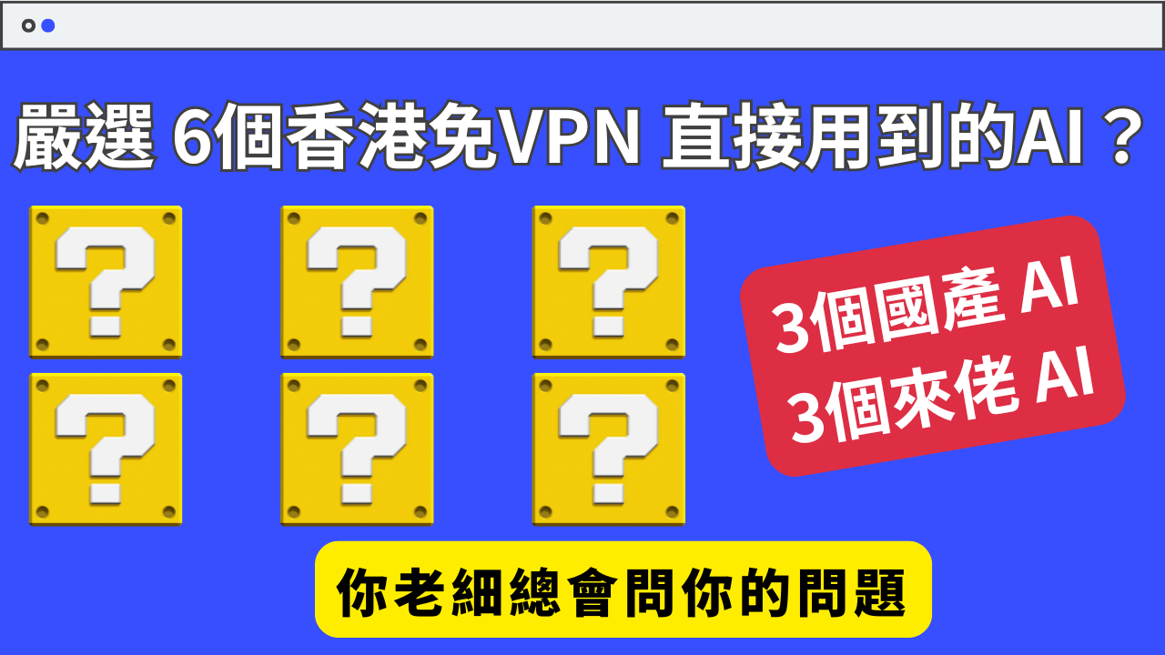 今天我們就來盤點 6 款實測過、在香港免 VPN 就能順暢使用的 AI 模型(包含 3 款國產 AI 與 3 款外國/開源 AI),幫你找到最適合自己的生產力助手!